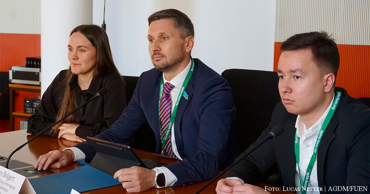Kasachstan wurde auf der Tagung durch Yevgeniy Bolgert, den Vorsitzenden der Gesellschaftlichen Stiftung „Wiedergeburt“ und Senator der Republik Kasachstan, sowie durch Kristina Larina, die Vorsitzende des Verbands der Deutschen Jugend Kasachstans vertreten.