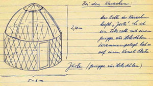 Bei den Kasachen. Jürte. | Zeichnung von Erich Schindler