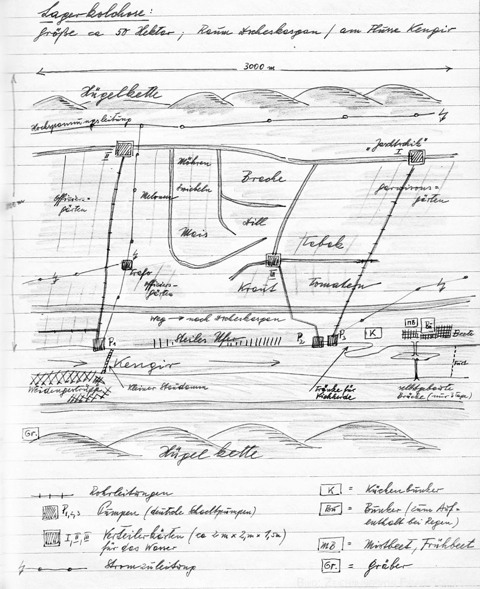 Lagerkolchose. | Zeichnung von Erich Schindler