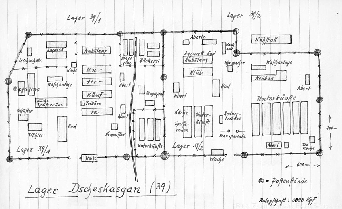 Lager Dscheskasgan | Zeichnung von Erich Schindler