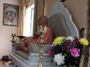 Die Wachsfigur des Gründers der Krishna-Bewegung sieht täuschend echt aus.