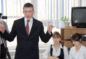 Als erster Redner des Pro-Teams beginnt Nikita seine Rede.