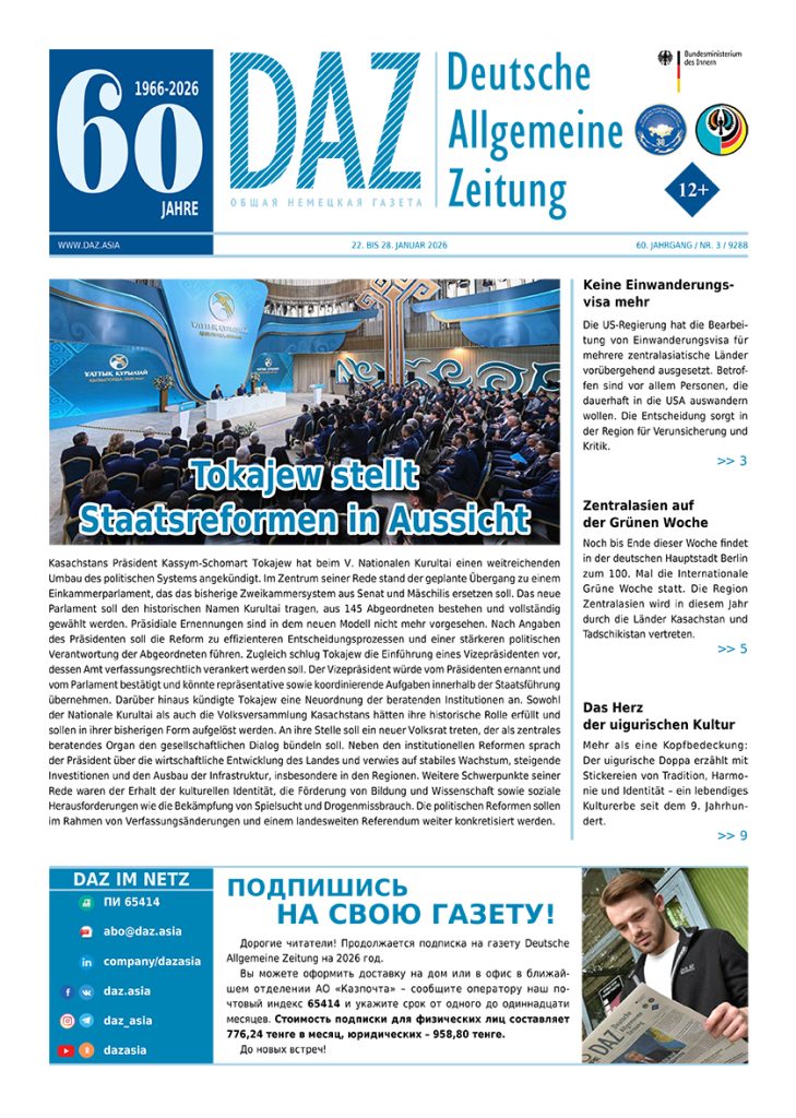 Gesellschaftliche Stiftung „Vereinigung der Deutschen Kasachstans „Wiedergeburt“ (GS „Wiedergeburt“) durch Förderung der Botschaft der Bundesrepublik Deutschland in Kasachstan veranstaltet den Wettbewerb „Deutsch im Herzen“ zum Thema „Die heutige Welt im deutschen Wort“.