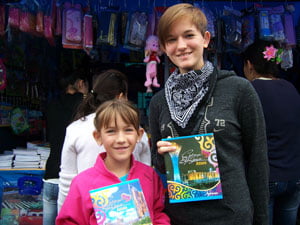 Isabell und Elena haben Souveniers gekauft.