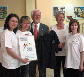 Frau Bechert (2. von rechts) bei der Übergabe der PASCH-Plakette durch den deutschen Botschafter, Herrn Rainer Eugen Schlageter.