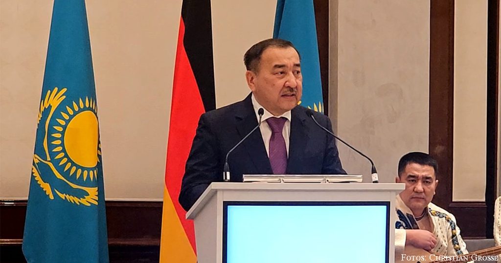Der Botschafter dankte insbesondere Deutschland und den anderen Staaten, die Kasachstan auf seinem Weg unterstützen. Das Land werde seine friedliche Außenpolitik fortsetzen und einen Beitrag zu Frieden und Stabilität leisten.