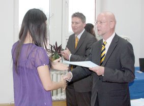 Dr. Amelung auf der DAAD-Stipendienvergabe in der Deutsch-Kasachischen Universität.