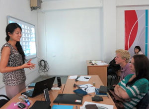 Julia berichtet den Logistikstudierenden an der DKU über ihre Erfahrungen.