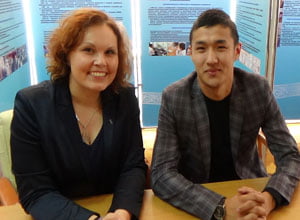 Dr. Katharina Buck gemeinsam mit ihrem DaF-Studenten Madijar Tarybai, Gewinner des DAAD-Märchen-Schreibwettbewerbs, 2014