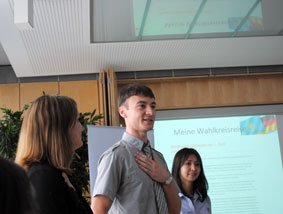 Iwan Litwinow und Assel Issajewa, IPS-Stipendiaten aus Kasachstan.