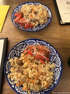 Но обо всем по порядку. Наслаждаясь сказочными видами Люксембурга и удивительным ощущением тонкого переплетения старины и современности, мы оказались на главной площади Гийома II. Возле памятника монарху по выходным проводятся шумные ярмарки и фермерские рынки, а недалеко от площади расположилась масса современных кафе, уютно вписавшихся в средневековые постройки. Мы провели несколько часов на ногах и посмотрели все, что могли: поднимались на самые высокие башни, спускались в казематы, любовались рекой и долиной. И в попытках найти свободное место набрели на вывеску с указанием блюд дня. На ней значилось на латинице – Plov, а в скобках на английском – Slowcooked lamb and rice (томленая баранина с рисом). От удивления мы замерли на месте. Интересно, что такое плов по-люксембургски? Или европейцы перешли на восточную кухню?