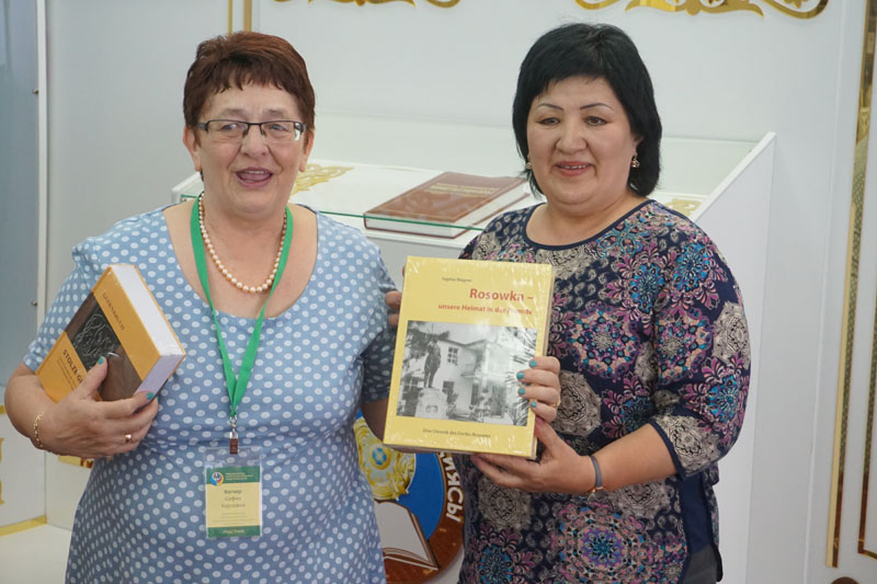 Ольга Литневская, заместитель председателя Павлодарского общества немцев, преподнесла в дар библиотеке два издания: «Из истории немцев Павлодарского Прииртышья» и «Яков Геринг: вся моя жизнь для людей», а София Вагнер – свою книгу о малой родине селе Розовка.