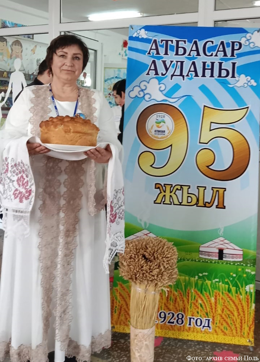 Светлана отмечает, что семья Поль связала свою историю с культурой Казахстана, но и не забывала национальные традиции: «У Василия и Клары родилось 12 детей. Большая часть их жизни прошла в селе Николаевка Атбасарского района Акмолинской области [перестало существовать с 2009 года – ред]. Несмотря на трудности, любовь к Казахстану стала неотъемлемой частью их жизни. Здесь они учились, работали, растили молодое поколение. Мой супруг Иван является пятым по счёту и старшим среди сыновей семьи Поль», – говорит моя собеседница.