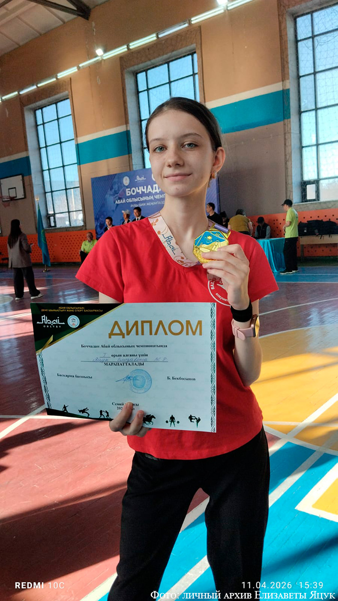 Студентка первого курса колледжа Семея имени Бабатайулы, обучающаяся по специальности «Графический дизайнер» (группа ГД11), участница клуба немецкой молодёжи «Glück» общественного объединения немцев «Возрождение» г. Семей Елизавета Романовна Яцук приняла участие в областных соревнованиях по адаптивному виду спорта — бочча и продемонстрировала высокий уровень подготовки, заняв первое место в своей категории.
